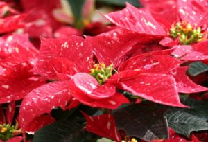 ポインセチアは、「クリスマスフラワー」の別名を持ち、現在ではクリスマスのシンボルフラワーとして定着していますが、原産地はメキシコの山間部です。クリスマスのシンボルフラワーとなった起源としては諸説ありますが、17世紀に入って、原産地の僧たちが、開花期がクリスマスの時期と重なり、また、苞の鮮やかな赤色と葉の緑色がクリスマスカラーとも一致するポンセチアをクリスマスの行列で使用するようになった説が有力なようです。
